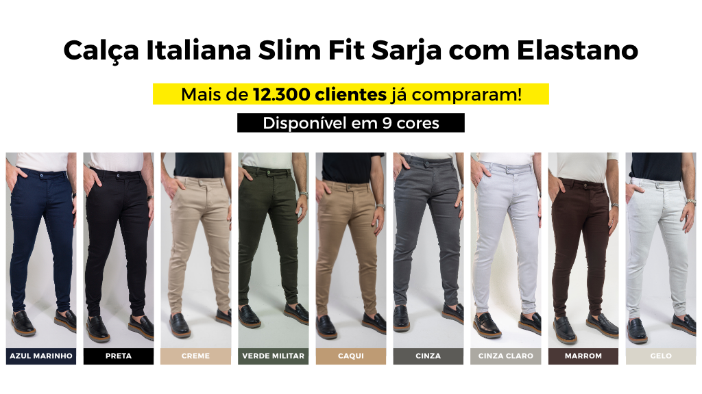 R: Mais moderna, mais confortável e mais estilosa que a tradicional. A Calça Italiana tem corte slim ajustado, cós transpassado, menos barra e 4% de elastano — ideal para quem busca elegância com liberdade de movimento.