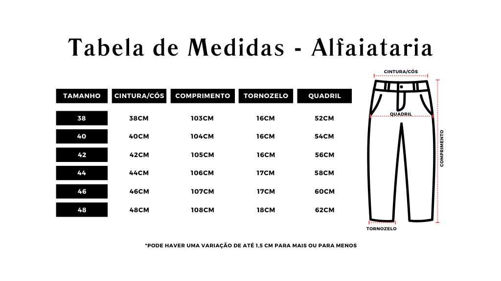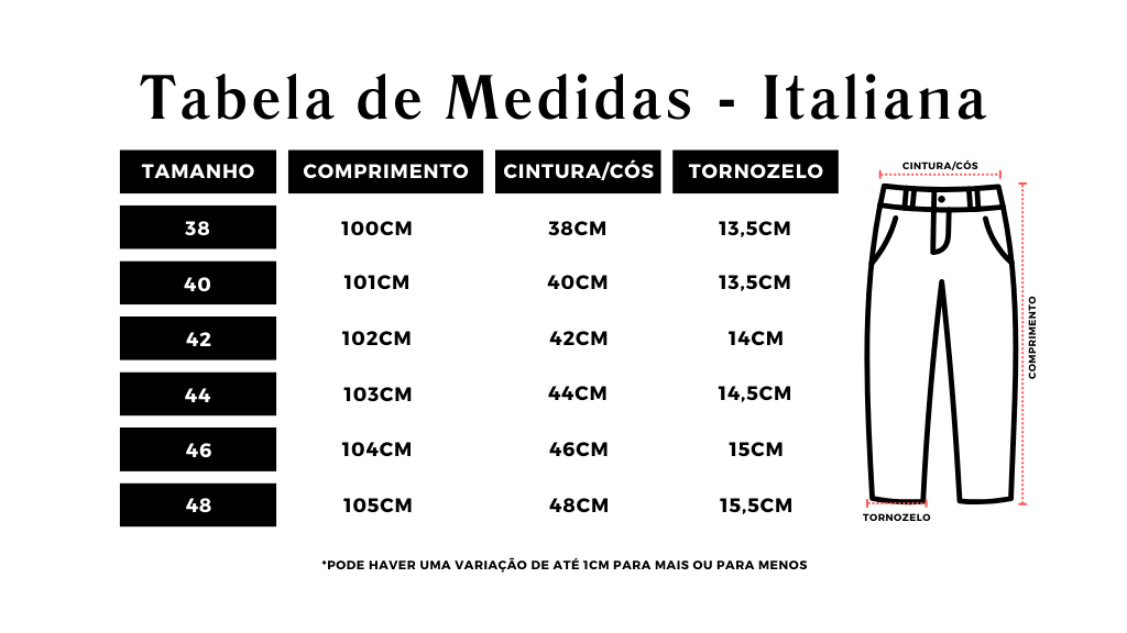 Escolha o tamanho que se ajusta perfeitamente ao seu estilo e corpo: