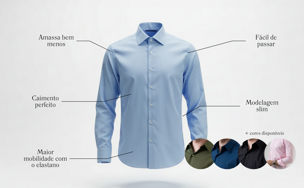 O resultado é uma camisa que amassa menos e é mais fácil de passar, ideal para a rotina.